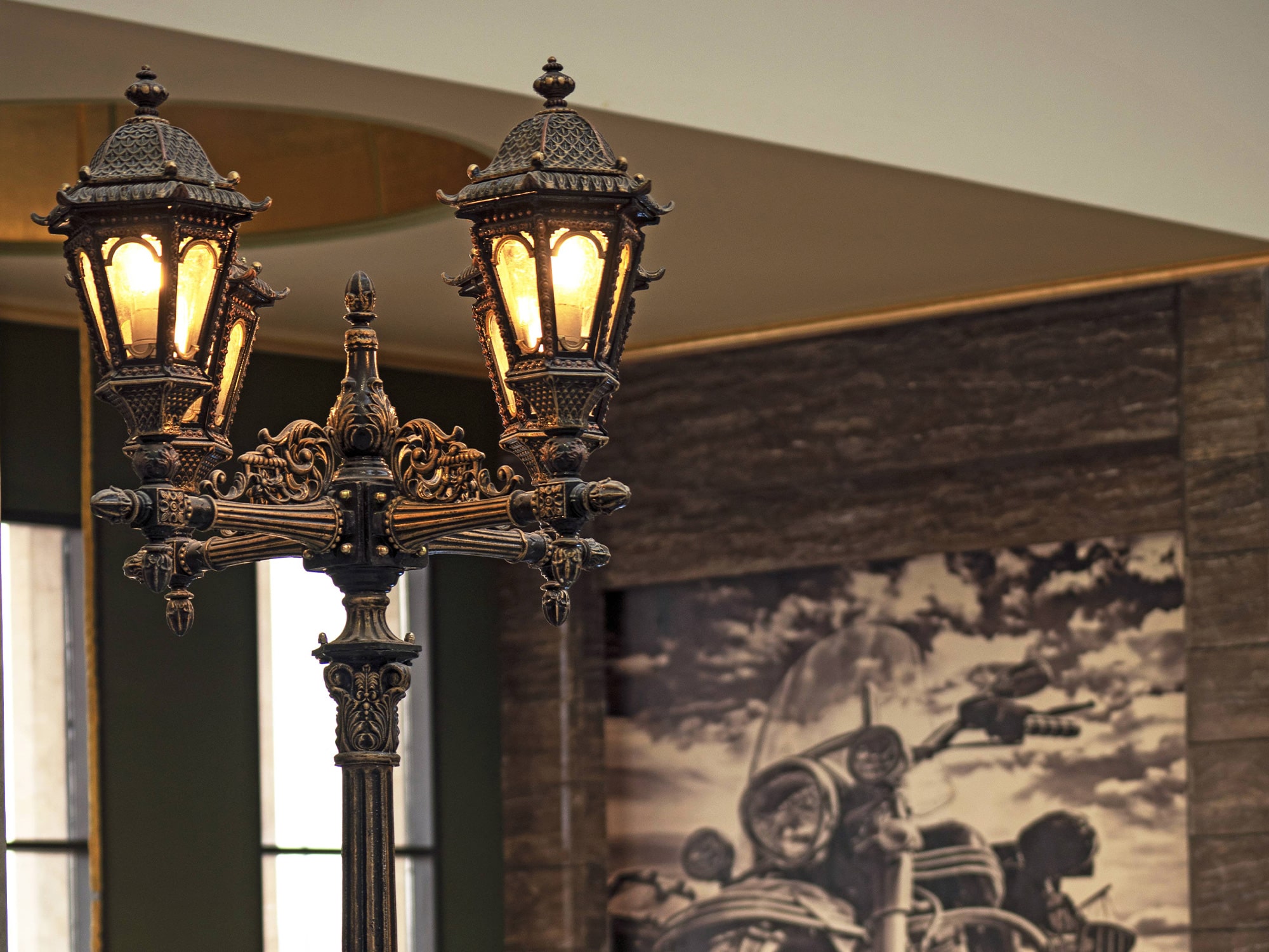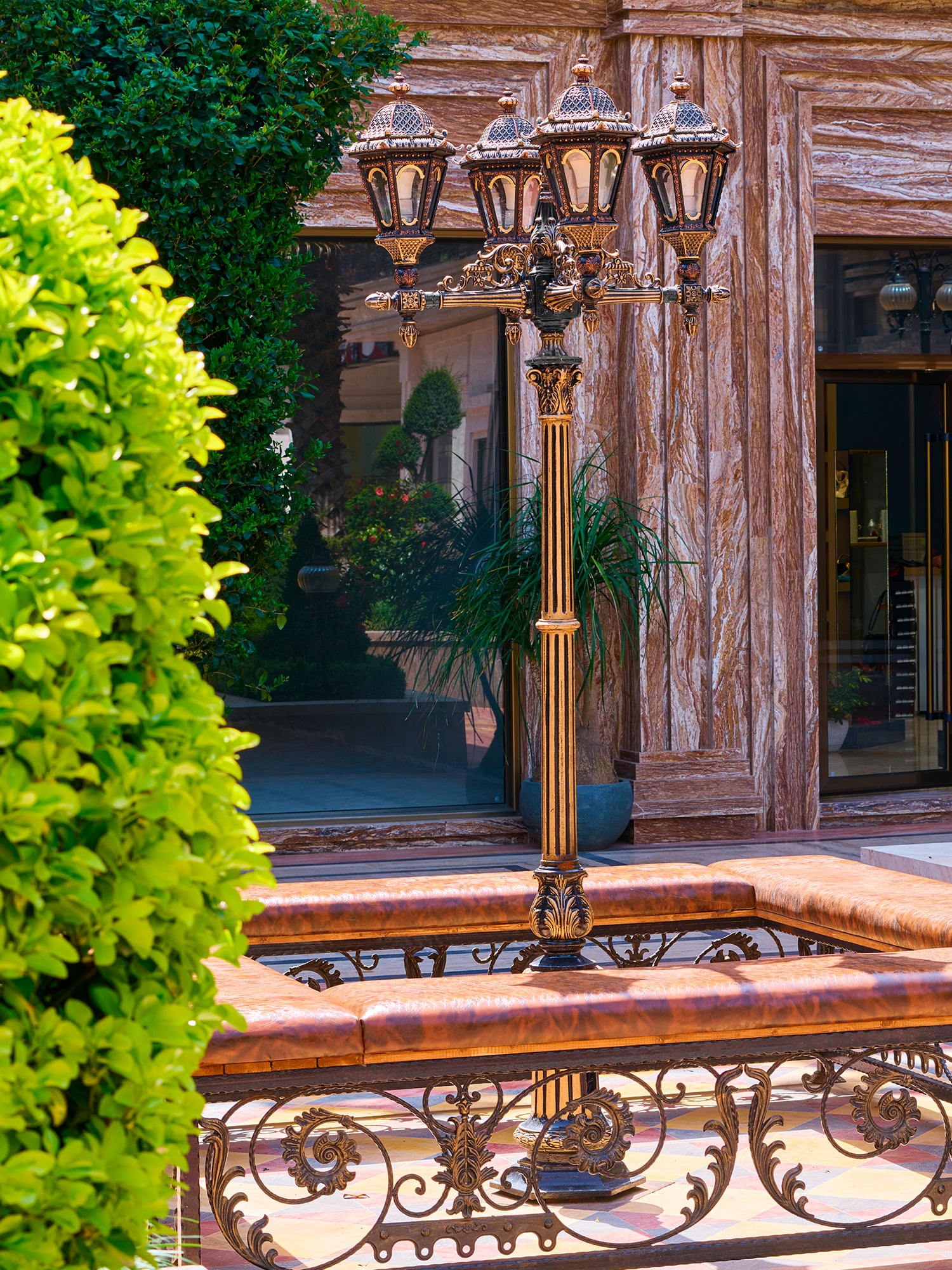 The Four-Light Lamp by Samen Ferforje stands as a classical sculpture that illuminates large landscapes through four symmetrical lights. The lamp provides wide visual illumination for large landscapes through its classical sculpture-like structure and symmetrical lights. The lamp made of cast iron and forged steel receives electrostatic coating to protect it against harsh weather conditions which suits both garden and park and villa and city entrance applications. The heavy base together with curved arms and vintage-style globes forms a royal and harmonious appearance when paired with matching benches and trash bins.