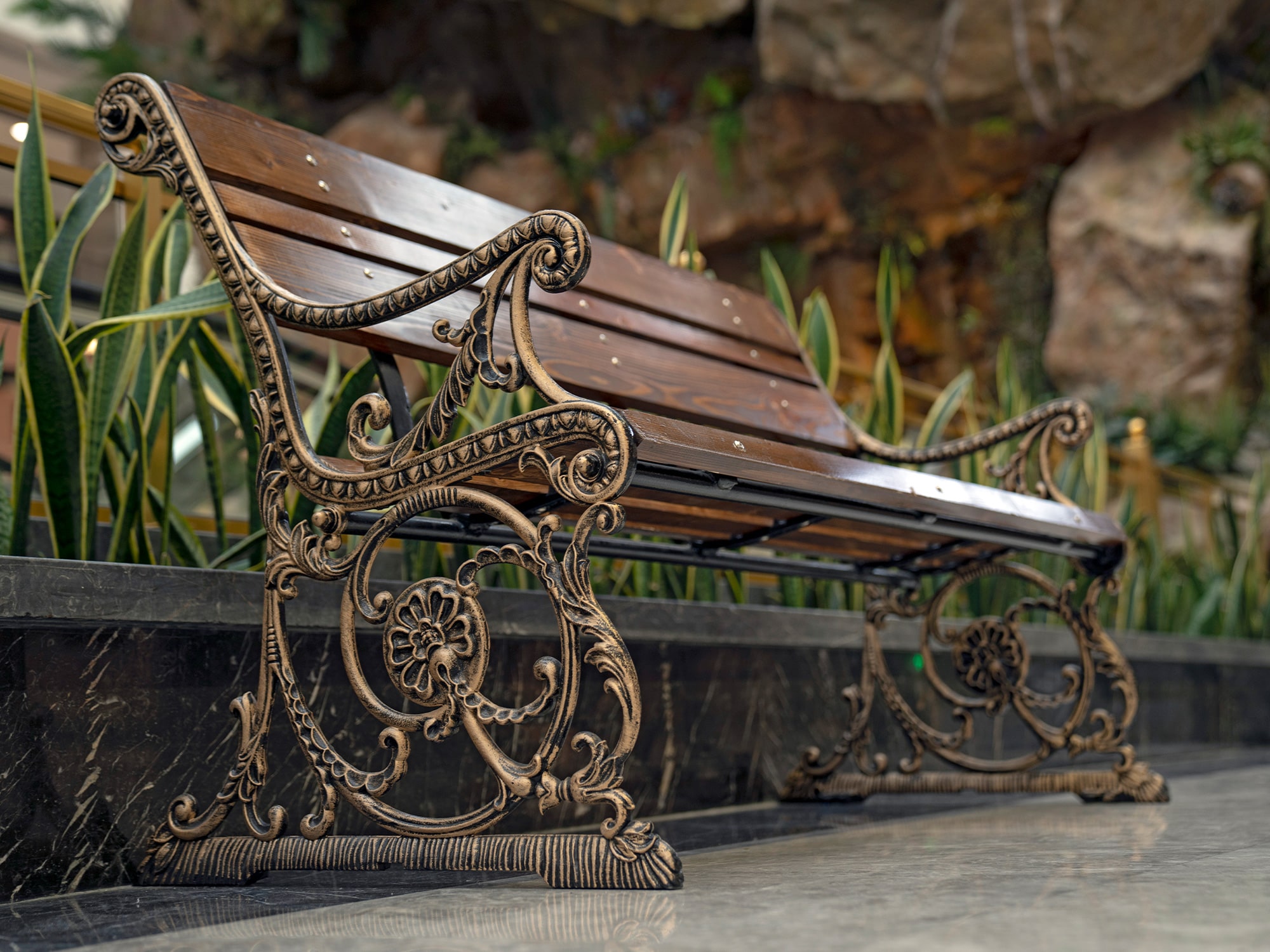 Samen Ferforge creates their Cast Iron Bench as a timeless piece for both outdoor and indoor use. The piece derives its authentic charm through its precision casting and classical decorative elements. The cast iron frame includes decorative patterns that combine with kiln-dried Russian wood to create a structure that balances strength with elegance. The ergonomic design of this bench creates an excellent fit for outdoor settings and classic interior environments.